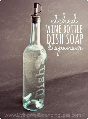 I've seen cute bottles painted orange and turned into pumpkins for fall decor too! There are so many great options for reusing bottles! I love etching glass as a gift. Instead of buying a new thing I need to look around and see what I could make from what I have! That dish soap dispenser would be such a cute house warming gift!